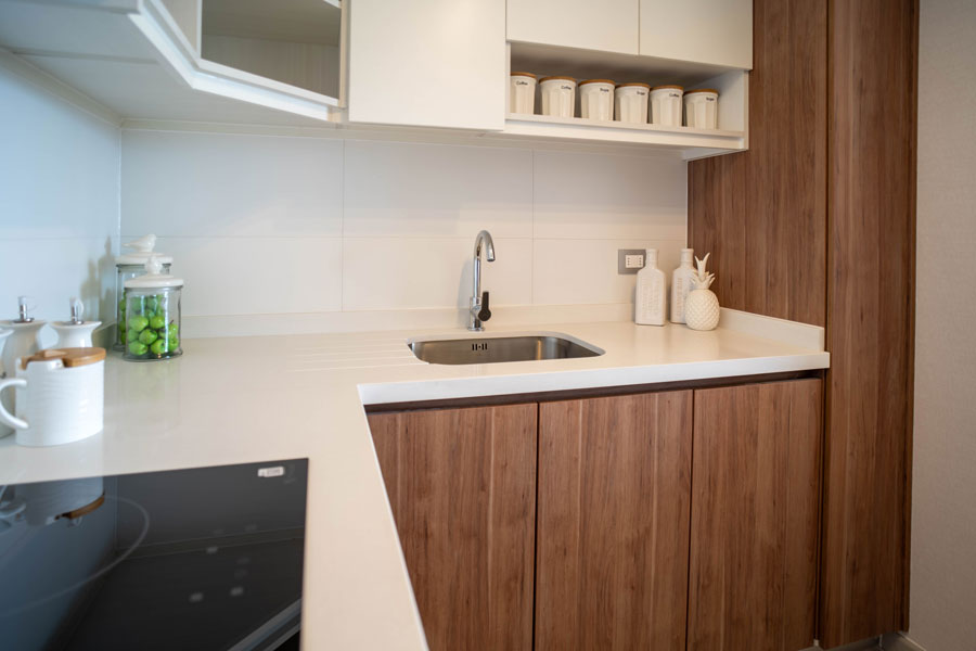 – Cubierta de cuarzo blanco