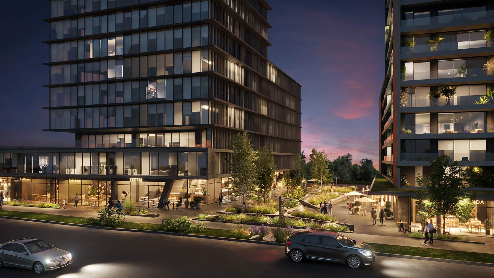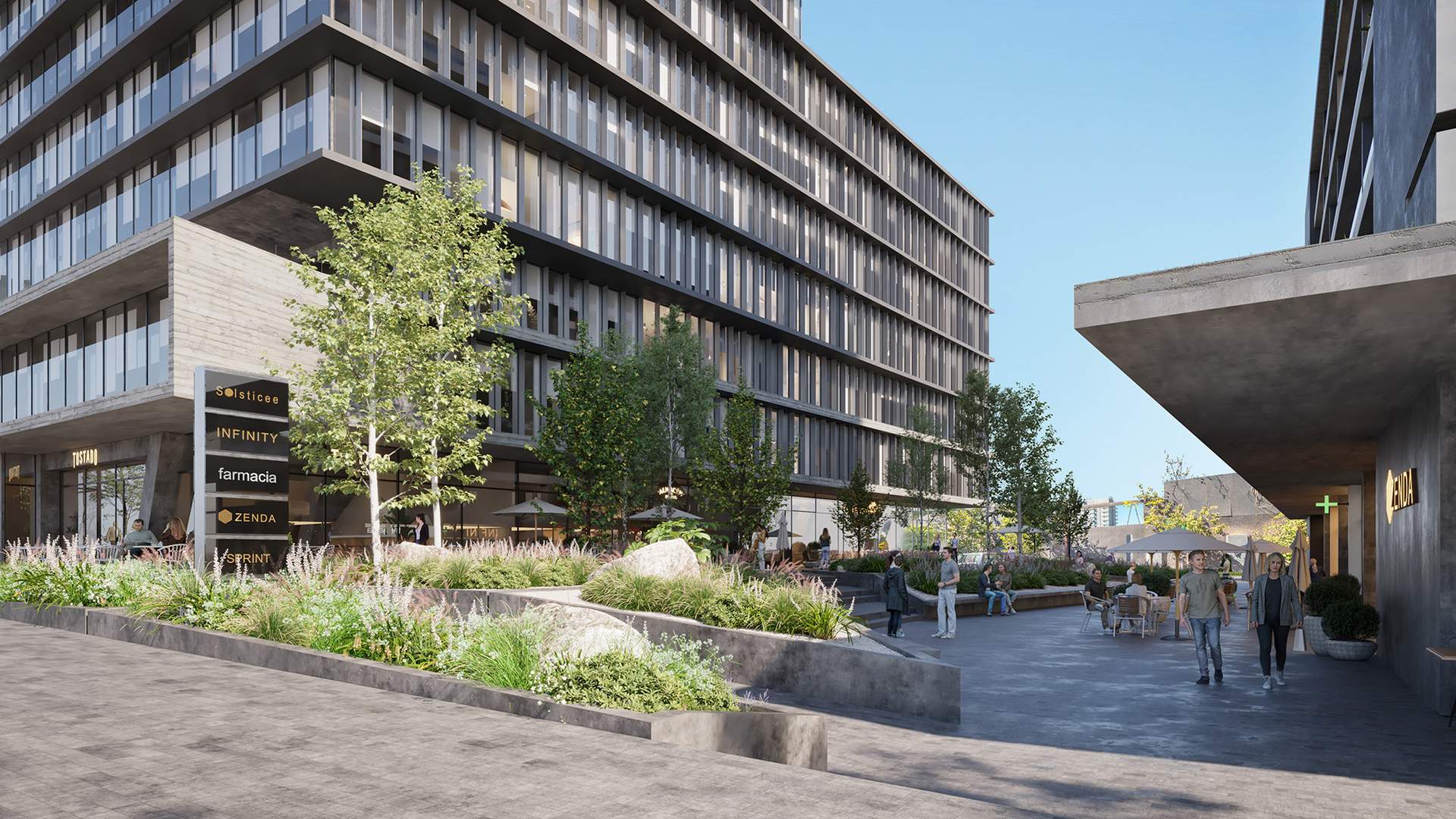 – Placa comercial, con servicios y tiendas para el día a día
