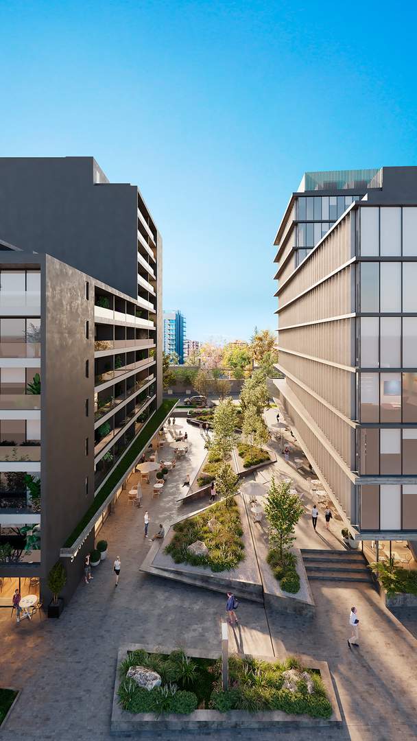 Almagro Hub se articula en torno a Plaza Boulevard, el corazón del proyecto, donde convergen departamentos, oficinas y una atractiva placa comercial, integrados en armonía y conectados por un espacio urbano pensado para disfrutar el barrio desde una nueva perspectiva.